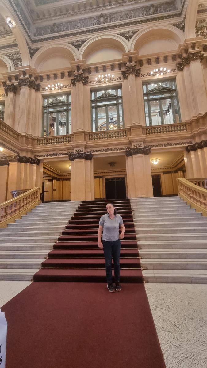 מתקשרים לחנה אדם (מלאכית הנסיעות שלנו) שתוך פחות מחצי שעה מארגנת לנו טיסה חלופית (דרך אדיס אבבה) שיוצאת מבואנוס איירס בערב. אנחנו מאומנים באלתורים ושינויים של הרגע האחרון. מחליטים לנצל את הזמן הנוסף שקיבלנו לסיור בבית האופרה המפואר בעיר. בית האופרה נחשב לאחד מארבעת בתי האופרה הטובים בעולם במיוחד בגלל האקוסטיקה שבו. המבואות לאולם בנויים משיש שיובא מאירופה, קירותיו צבועים בזהב טהור – 22 קראט, ובנייתו לקחה למעלה מ-20 שנה, כולל החלפה של שלושה אדריכלים לאחר ששניים מתו בדרך בגיל 44 (דבר שחייב לשכור אדריכל שלישי שגילו מעל 45..).