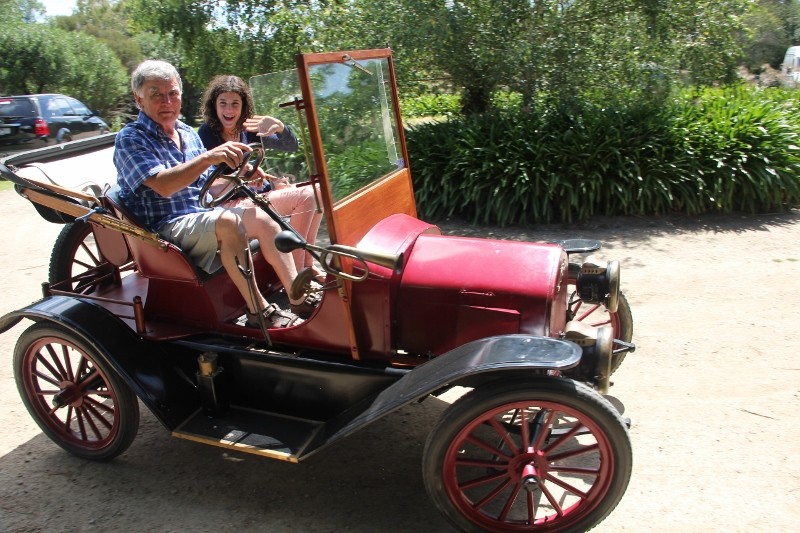 בשבת יצאנו לפגישה אצל ווריק, ה"בחור" שמכר לנו את הקרוון . אני הבטחתי לו שלאחר המסע נבוא עם יעל והילדים לפגישה משותפת. במהלך המסע הייתי מעדכן אותו על המיקום שלנו ומודה לו על הקרוון המדוגם שמכר לנו שהכל בו עובד כמו שעון.. הפגישה הייתה מרגשת ואחד מהחוויוצת המיוחדות שהיו לנו בטיול. ווריק ואשתו האיטלקייה הם אוסטרלים מקסימים שאירחו אותנו בביתם ונתנו לנו ולילדים תחושה של בית. כזכור תחביבו של ווריק הוא שיפוץ של מכוניות עתיקות. הפעם הוא הכין את כולם לנסיעה. ביום שהגענו עשינו סיבוב במכוניות שגילם למעלה ממאה שנה, ובמכוניות ספורט משנות ה-50. ווריק נהנה לא פחות מאיתנו משום שהמכוניות הללו כבר לא מענייניות את הילדים והנכדים שלו והוא שמח שסוף סוף הוא יכול להשוויץ בהם ולהוציא אותם לסיבוב…